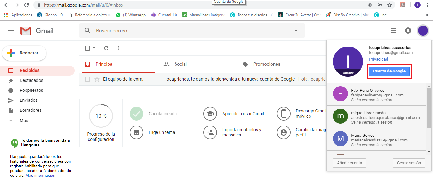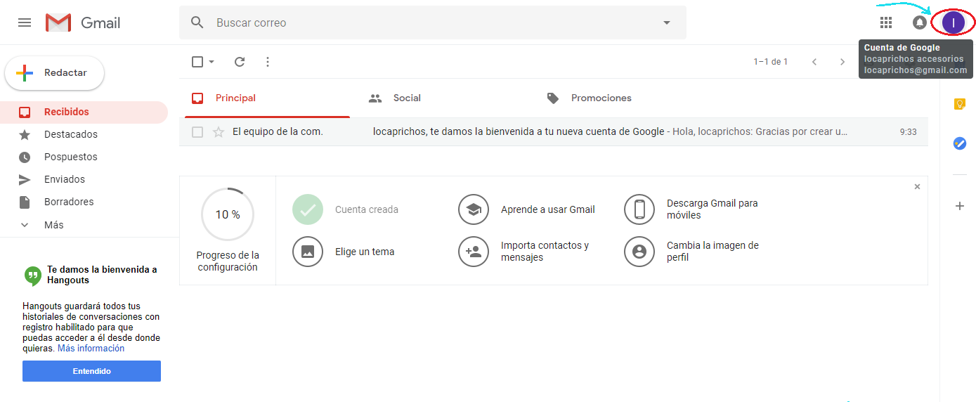 馃椄 Ingresa a tu cuenta GMAIL y haz clic en el icono de tu Cuenta.