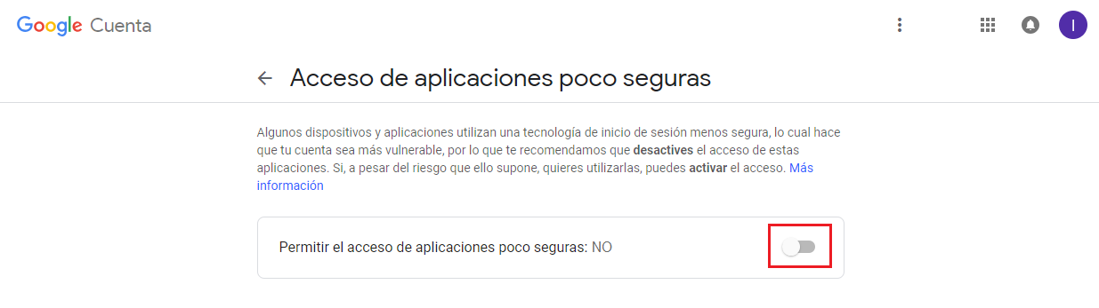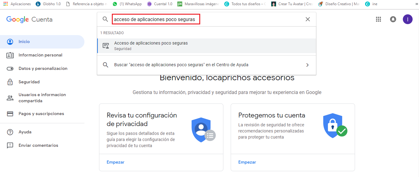 馃椄 Digitando en la barra de b煤squeda Acceso de aplicaciones poco seguras y haz clic en la tecla Entrar.