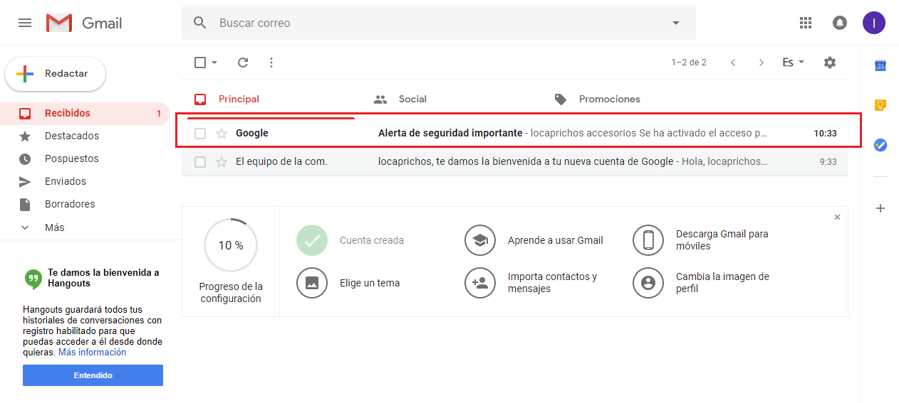 S铆 el proceso se realiz贸 de forma correcta, se visualizar谩 un mensaje de Alerta en la bandeja de entrada como el siguiente