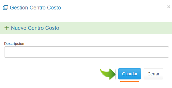 En esta sección puedes crear o modificar los Centro de Costos que desees. |