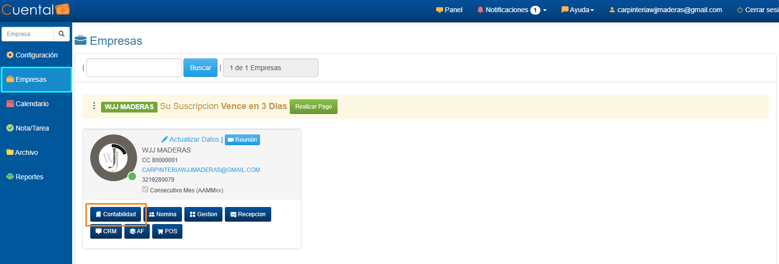 1. Realiza la ruta Empresas/botón Contabilidad.