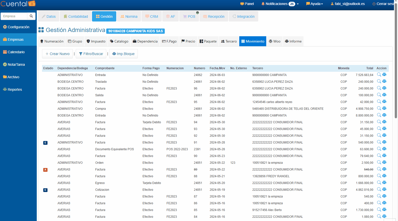 2. En la pestaña Movimiento, haz clic en el botón Crear Nuevo.