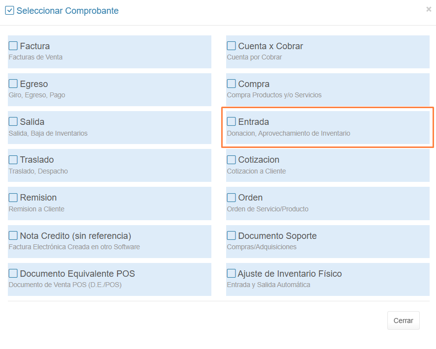 3. Selecciona un Comprobante Entrada.