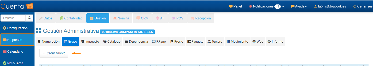 2. Ingresa a la pestaña Grupo y haz clic en el botón Crear Nuevo.